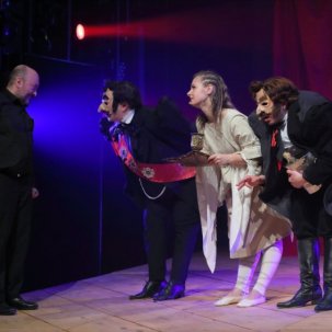 Спектакль идёт в сопровождении джазового ансамбля под руководством Платона Газелериди (клавишные):