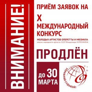 ПРОДЛЕВАЕМ СРОК ПРИЁМА ЗАЯВОК НА X МЕЖДУНАРОДНЫЙ КОНКУРС ИМЕНИ В. А. КУРОЧКИНА