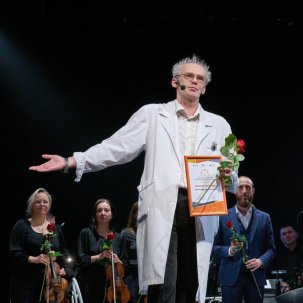 На Малой сцене Фестиваль открыл Театр музыки, драмы и комедии из Новоуральска, показав нам иной, экспериментальный театр, превратив детскую сказку «Муха-Цокотуха» в сеанс психоанализа.